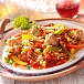 Den Basmati Reis nach Packungsanweisung zubereiten und zum Fleisch servieren.